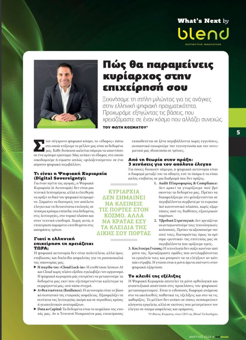 Our CEO, Mr. Fotis Kosmatos, has been featured in Netweek's prestigious issue, "50 Technology Leaders," launched on July 28 with the Sunday newspaper VIMA